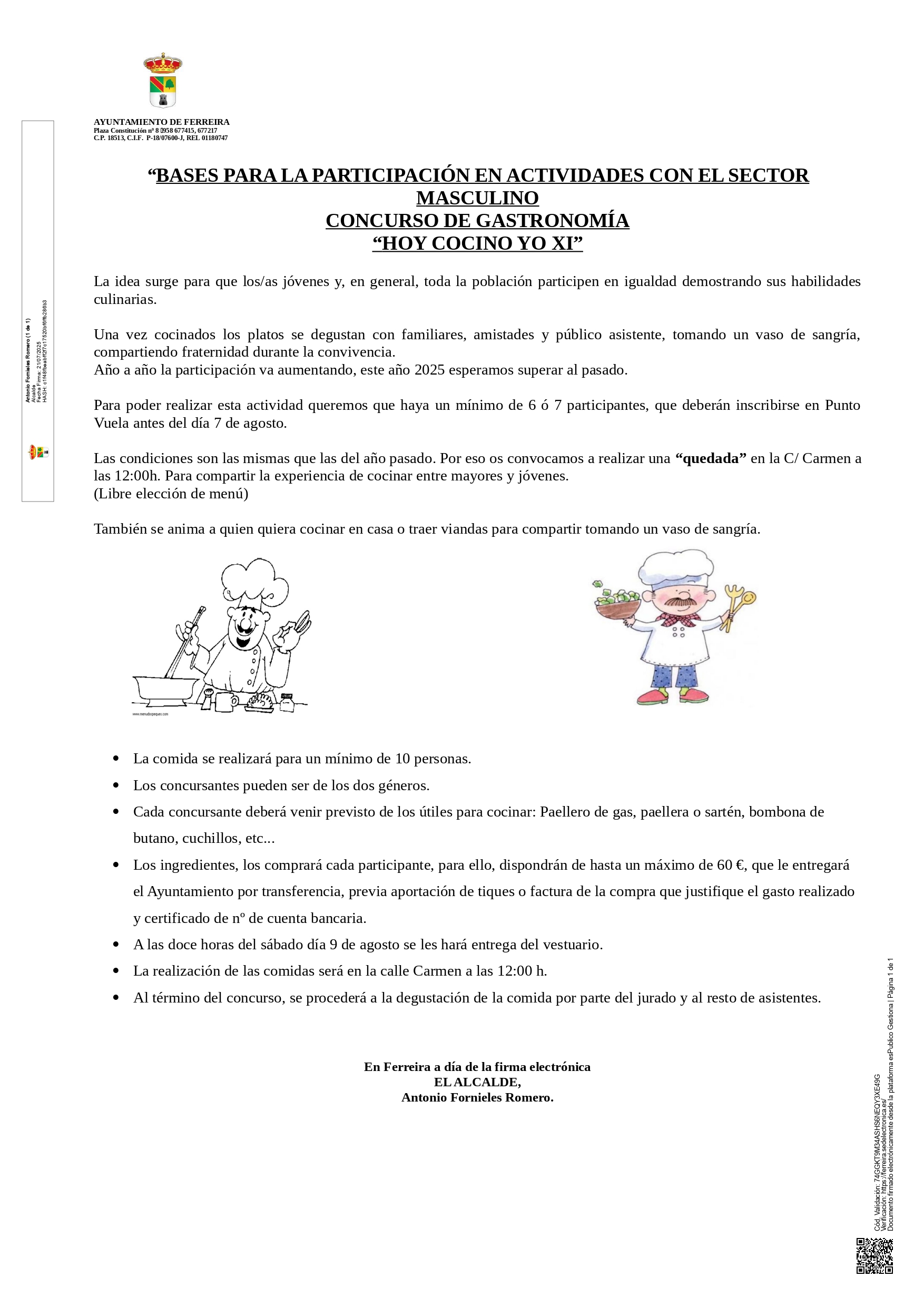 “BASES PARA LA PARTICIPACIÓN EN ACTIVIDADES CON EL SECTOR MASCULINO CONCURSO DE GASTRONOMÍA